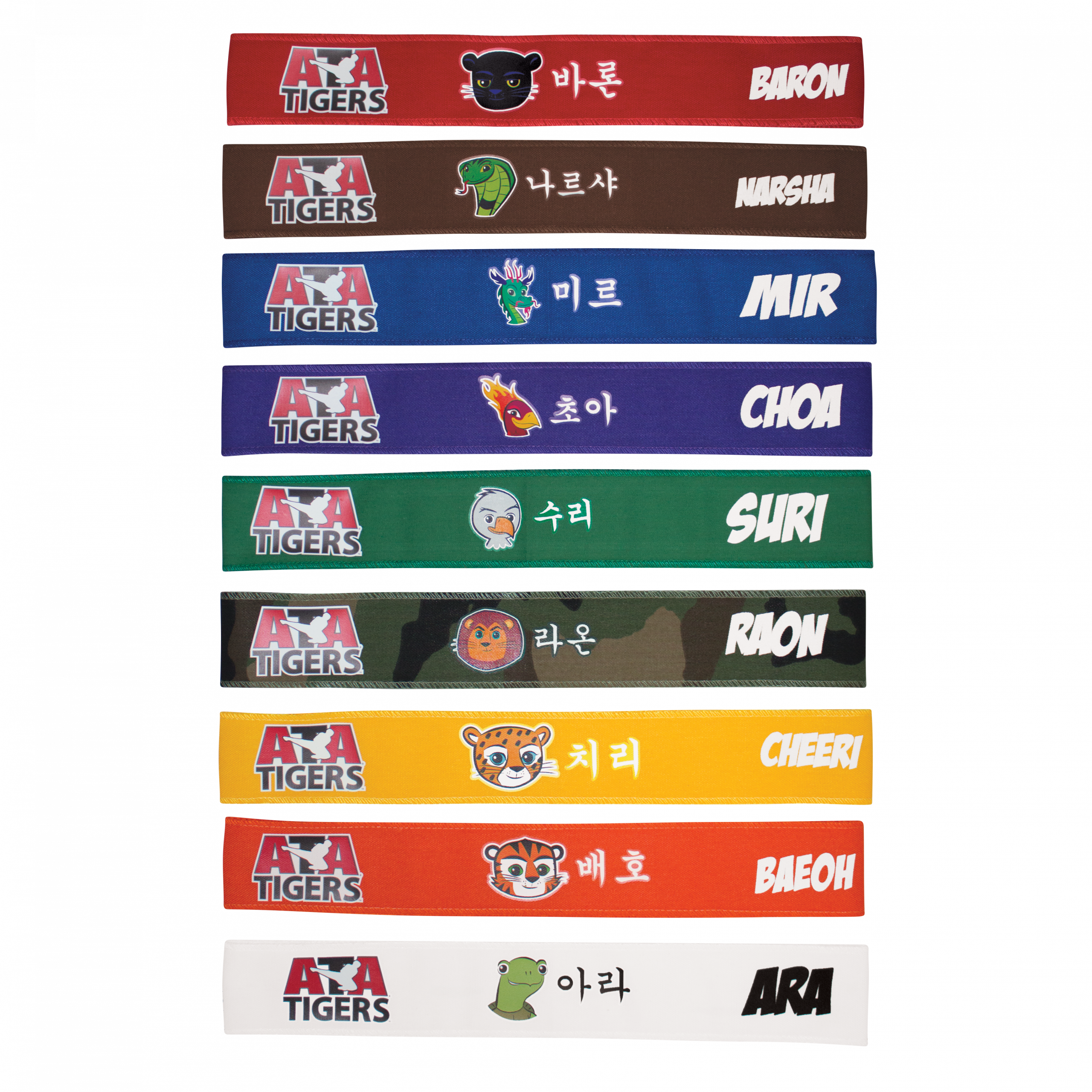 Please note: students enrolled in Pride Martial Art’s ATA Tigers program will receive one headband as a gift when they test for and reach the corresponding belt rank