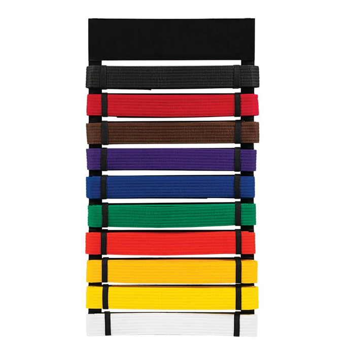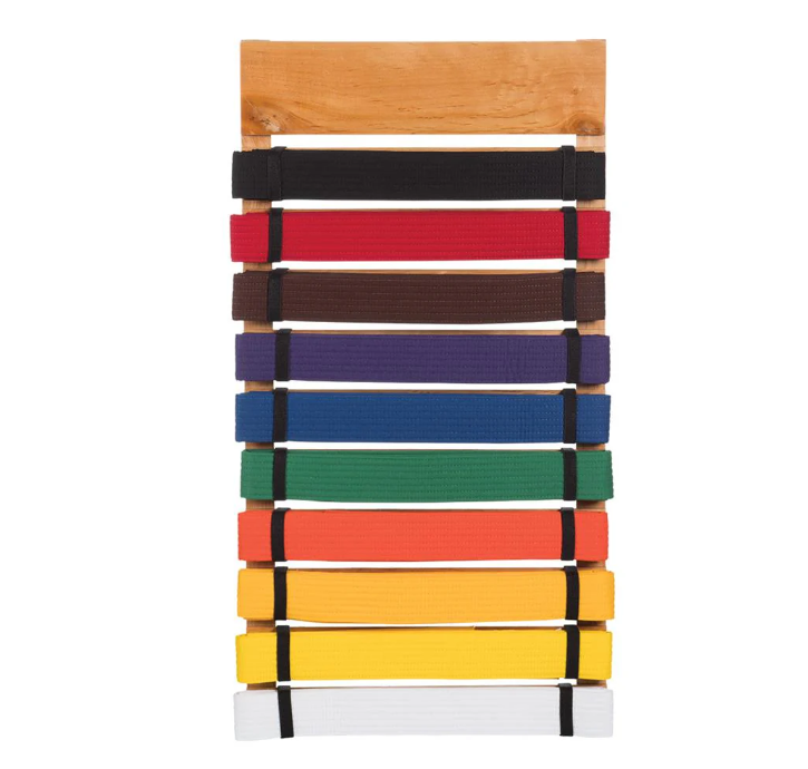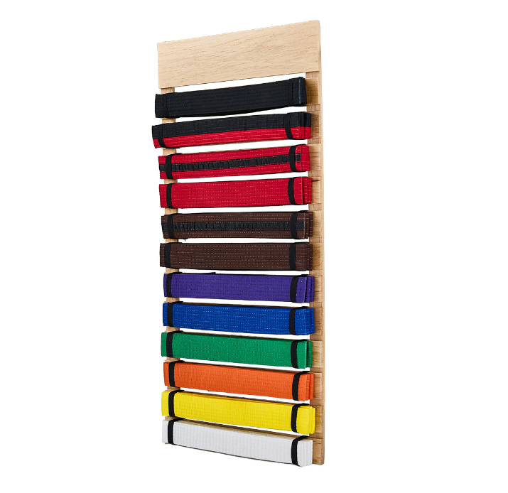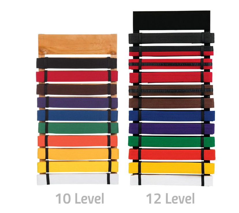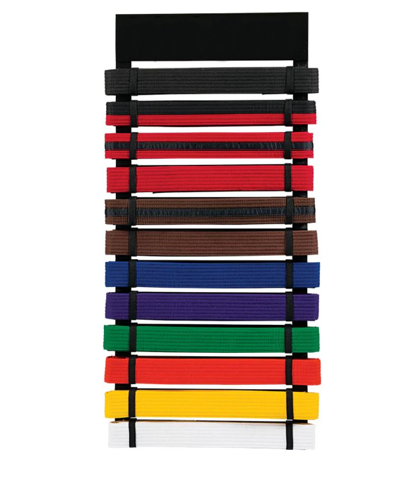 This customizable belt display offers a clean, bold look and comes complete with elastic straps that hold ten belts securely on 1.875″ slats. Solid wood construction.