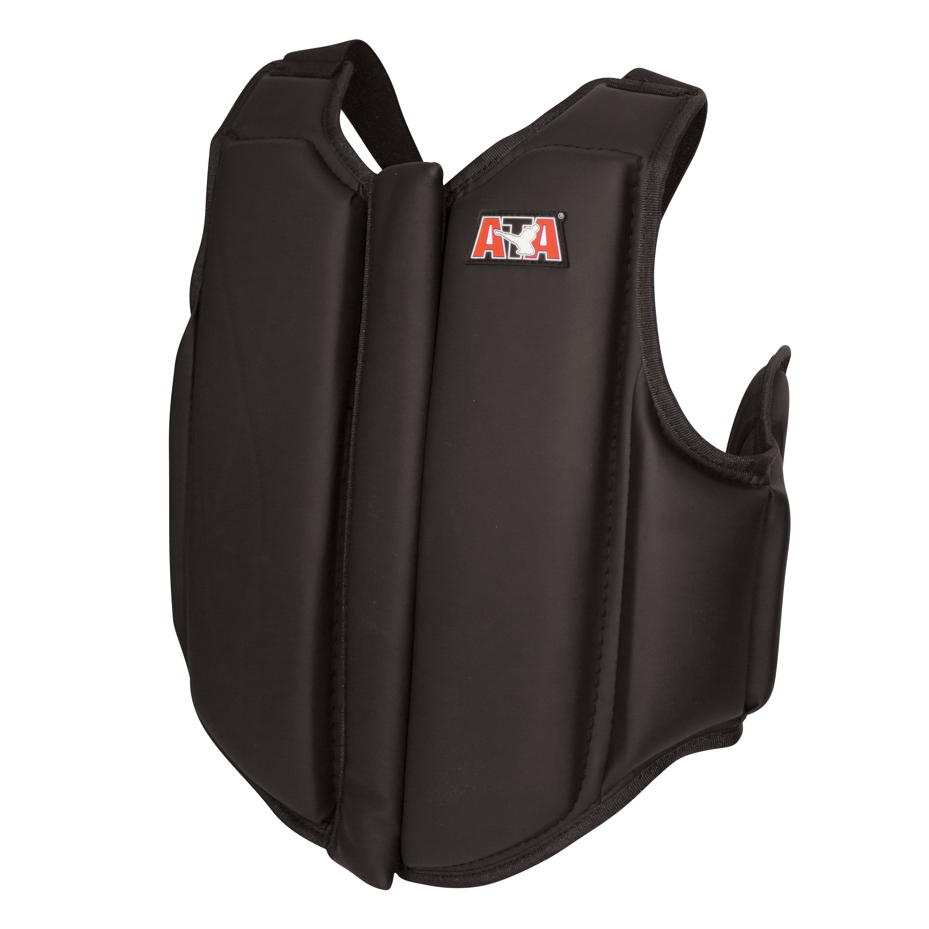 Features rigid foam construction that shields the ribs during sparring. Stays in position with sturdy elastic straps that meet between the shoulder blades, then join with an elastic strap that stretches across the back to connect the two side panels. Features a front zipper (on adult sizes), enclosed in a padded Velcro closure, for easy application and removal.